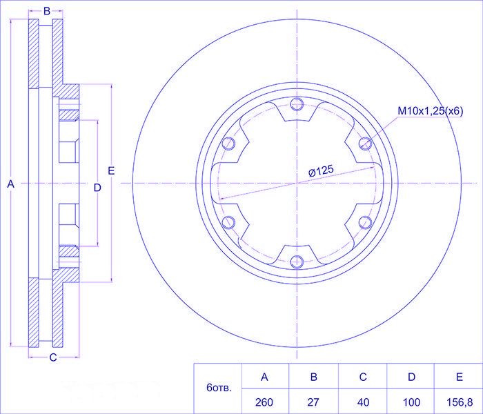 Диск тормозной /передний /TI-GUAR для Nissan ATLAS F23, CARAVAN E24 1993-; 260/27мм; TG-40206-20N01 PD3212123S 3212123 GR20604