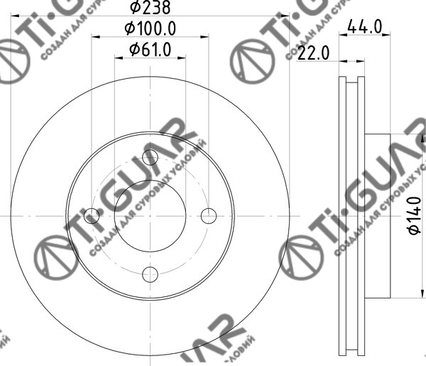 Диск тормозной /передний /TI-GUAR для Nissan Tiida, LADA Largus, Vesta Latio 2011-2018 /March Note Renault Logan Megane II; 238/22мм; TG-40206-AX000 402061HM0A 40206CT40A