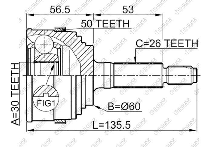 ШРУС наружный /TI-GUAR для HONDA STREAM RN#, HR-V D16A, CIVIC FERIO ES2 , D15B, ES3, D17A 2000- /ABS /30*60*26; TG-4455Z50; 0310055A50 310083A 44010S0A950 44014S5AJ51 44014S5AJ52 HO055A50